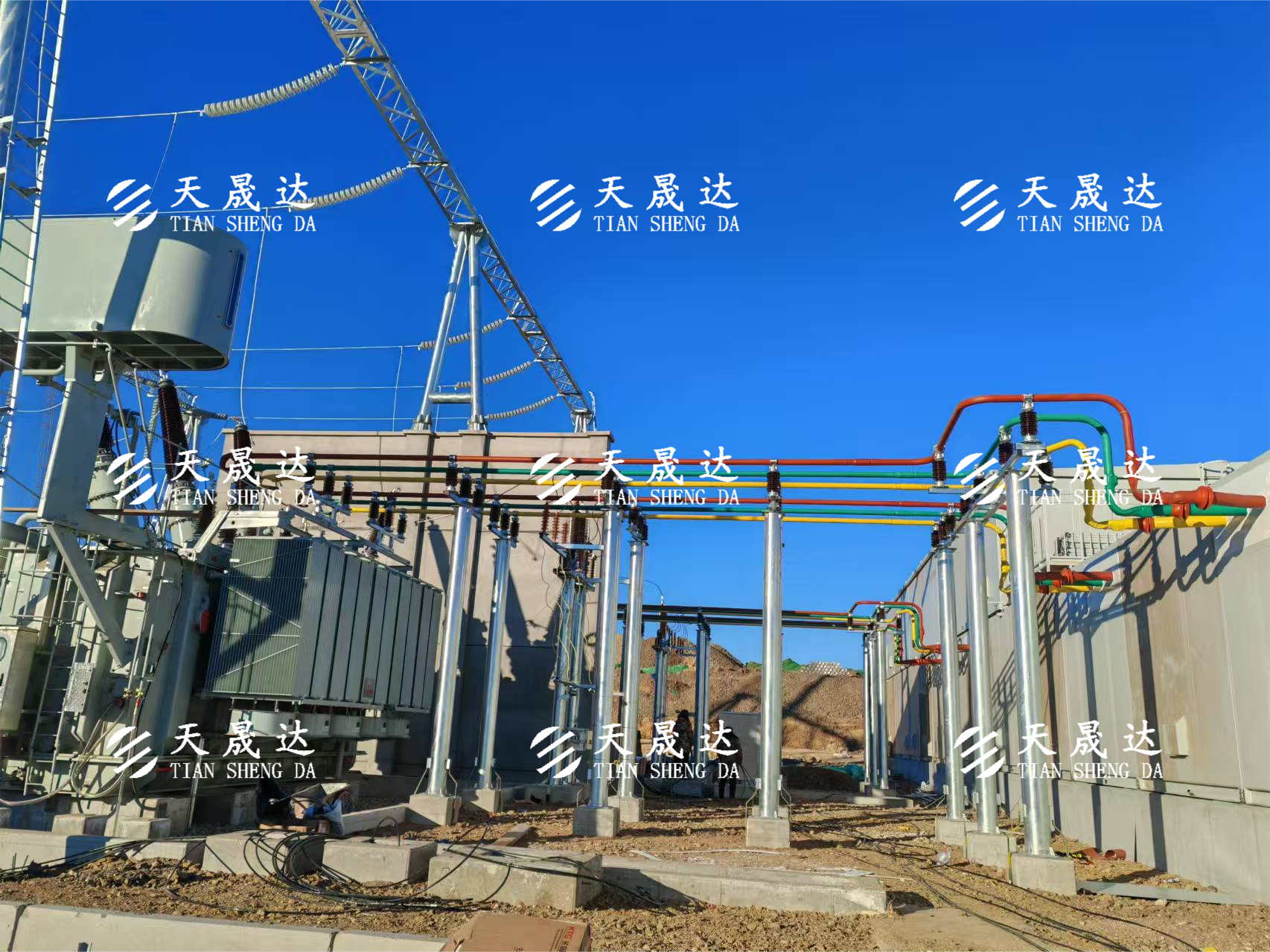 中廣核新能源內蒙古興安盟科右中旗科爾沁沙地200MW陸上風電位于內蒙古興安盟科右中旗科爾沁沙地,該項目管型母線全長400米,我公司技術人員于1129日到達項目地開始實地勘測,測量數據傳輸回公司后我公司全體人員加班加點設計繪圖、生產加工,128日產品全部送達現場,安裝團隊克服現場惡劣天氣和地理環境于1218日順利完工并通過現場驗收,該項目從測量到安裝驗收僅用了20天時間,因此受到了中廣核業主的大力表揚